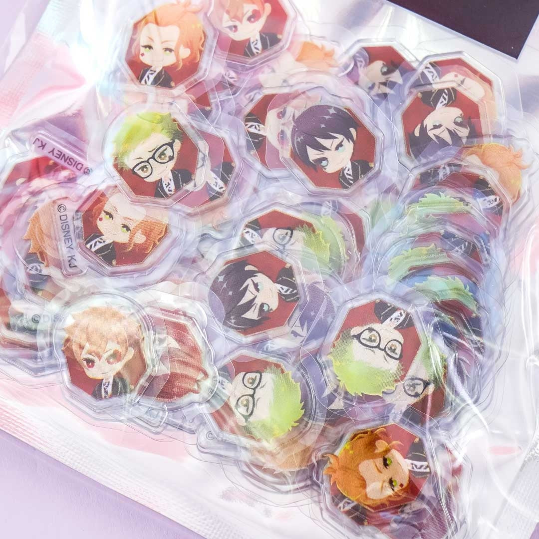 Use these semi-transparent sticker flakes to kawaii-fy your laptop! The set features the five members of Twisted Wonderland’s Heartslabyul Dormitory namely Riddle Rosehearts, Ace Trappola, Deuce Spade, Trey Clover, and Cater Diamond! These die-cut drop seal bits all come in a resealable pack.