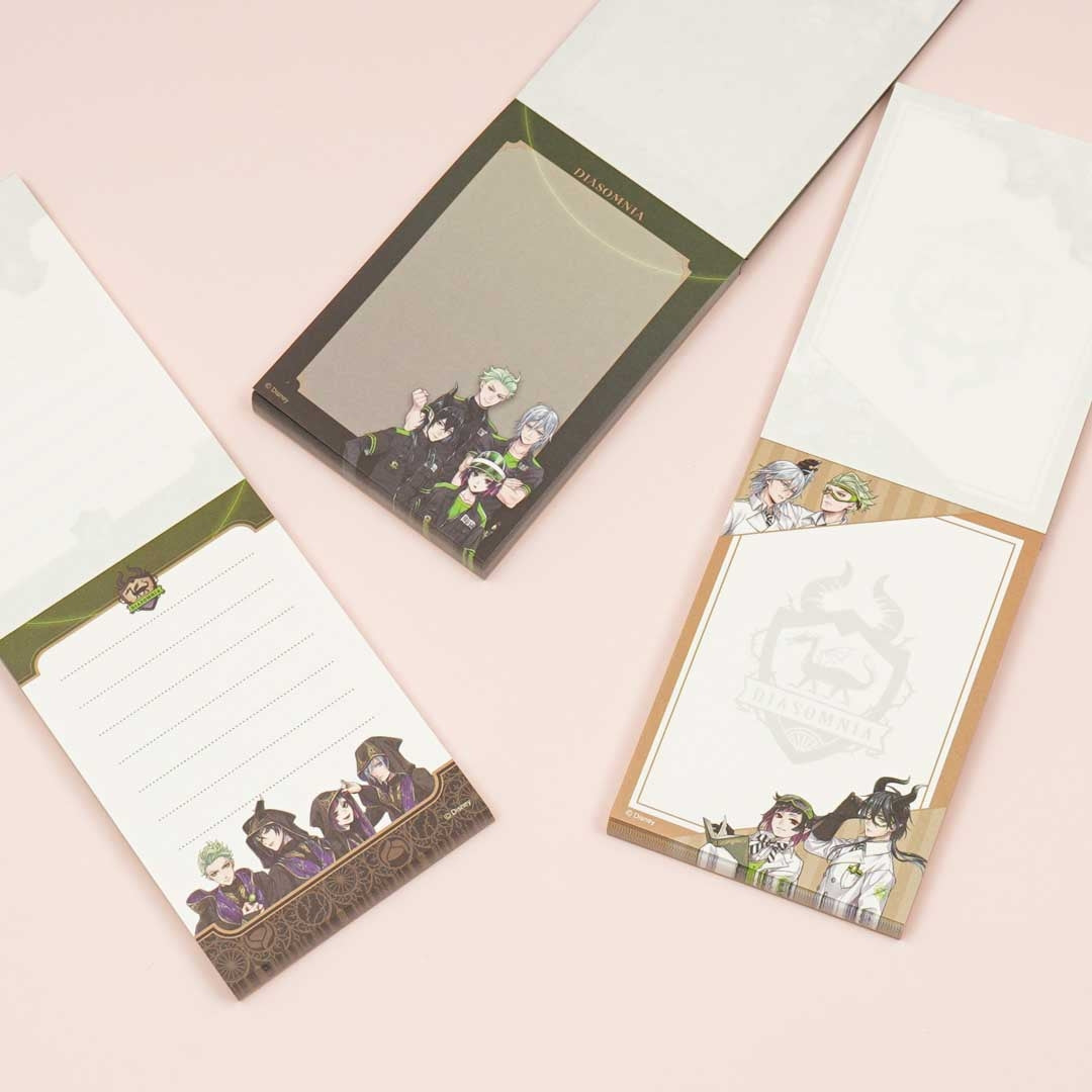 A kawaii set of mini memo pads illustrated with Diasomnia dorm students from Twisted Wonderland