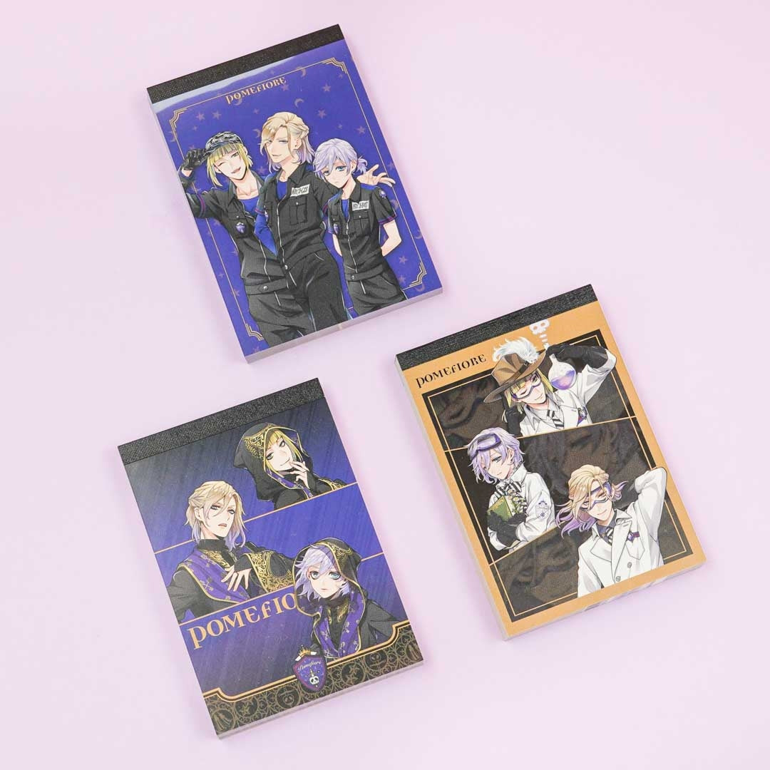 A kawaii set of mini memo pads showcasing Pomfioredorm students from Twisted Wonderland