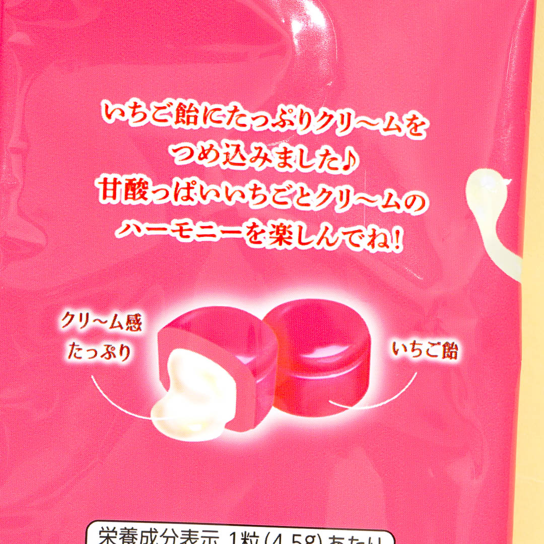 Enjoy the sweet and sour taste of strawberry and milk in these delicious candies! Each strawberry-flavored hard candy has a creamy filling in the center.