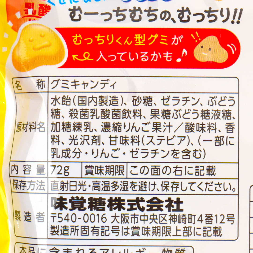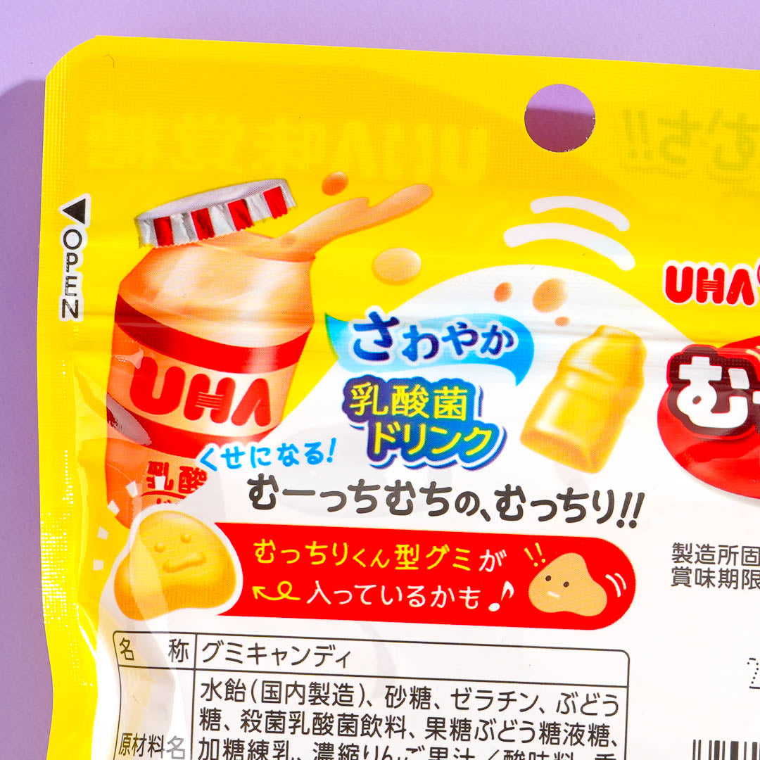 These bottle-shaped gummies have a unique chewy texture and the refreshing sweet flavor of lactic acid drink. You might even see a surprise Mucchiri-shaped gummy! Munch on these gummies during your work or study break.