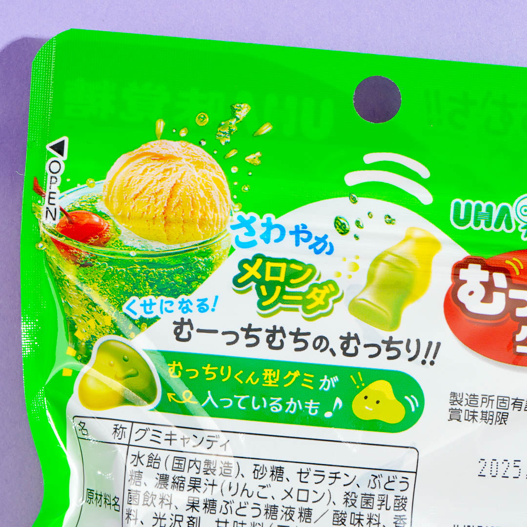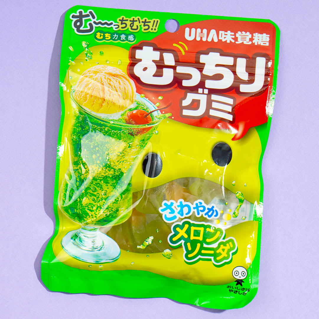 Melon soda, Japan's classic carbonated drink flavor, can now be enjoyed in gummy candy! This bottle-shaped gummy has a unique texture with a firm and moderate chewiness so it can stay longer in your mouth. It comes in a resealable pouch so you can munch on some and save the rest for later.