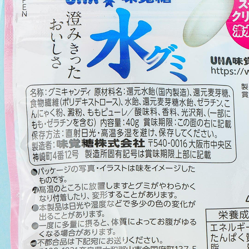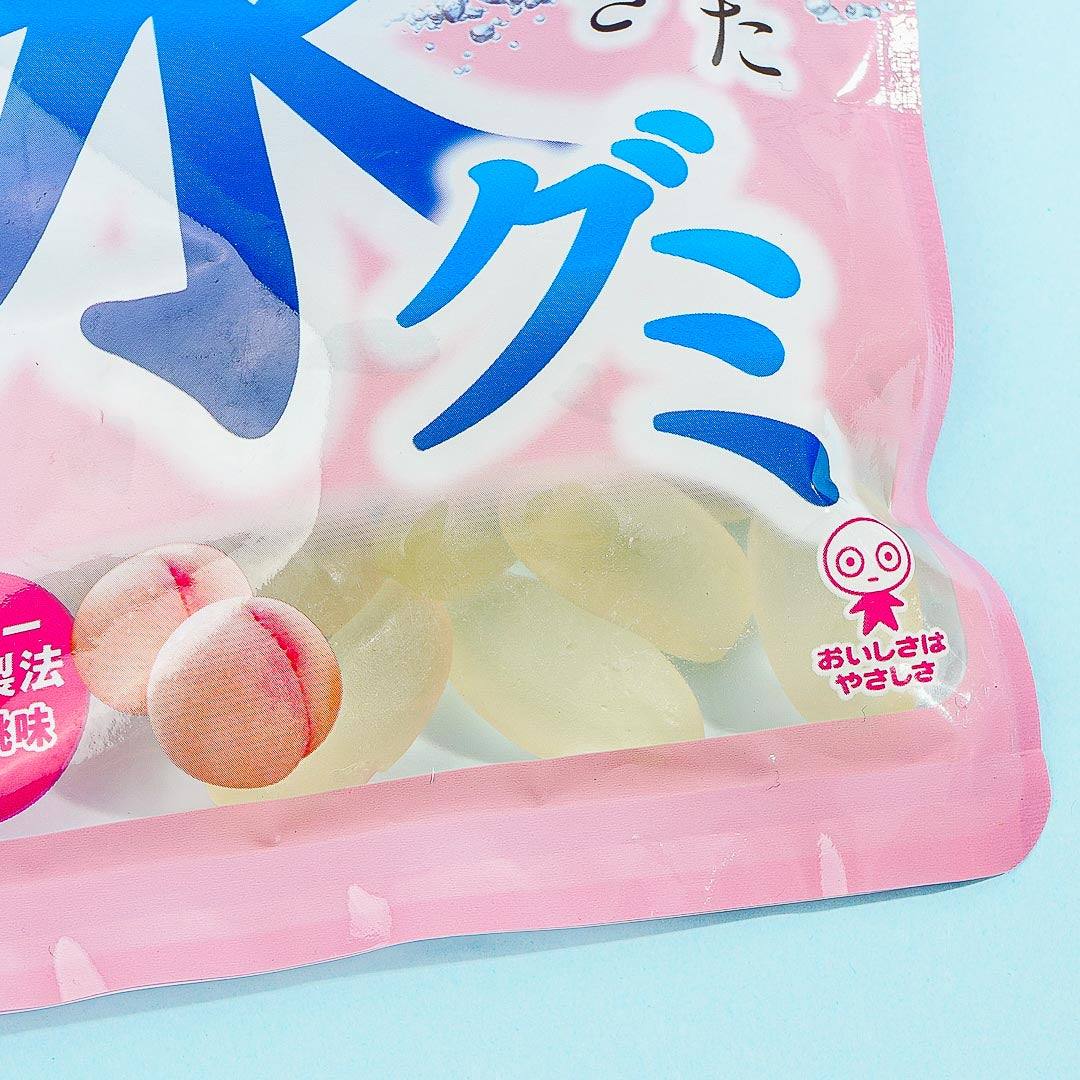Enjoy munching on these clear fruity gummies! They look like water droplets and feature a refreshing Shimizu white peach flavor. The resealable pouch also has a refreshing design of fresh white peaches floating in cold water!