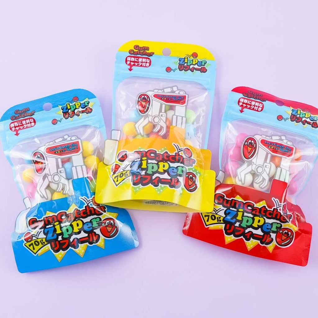 Chew on this pack of gumballs featuring prints of a crane machine! These gumballs are super colorful. Make sure you keep the resealable bag closed so these treats stay nice and fresh. Surprise yourself with a random package design when you order.