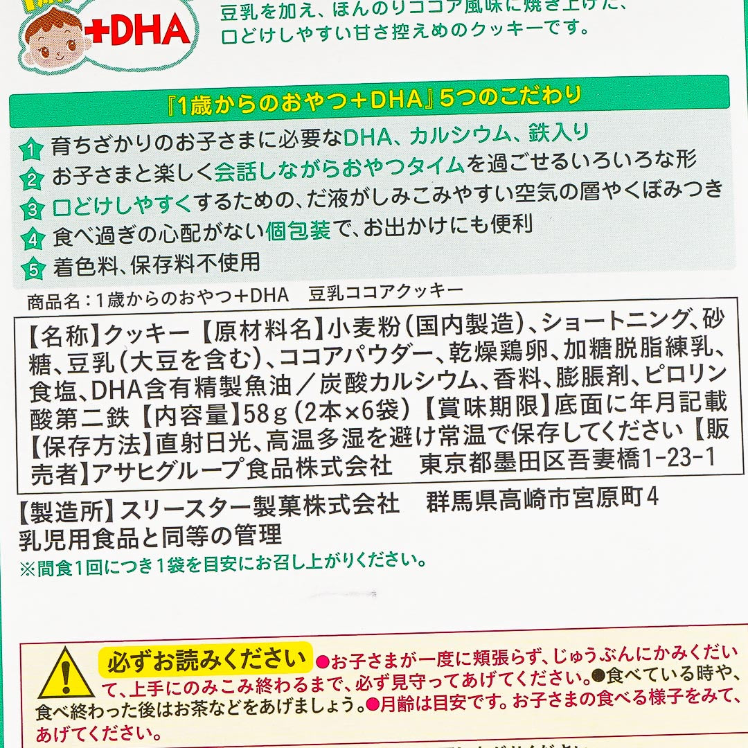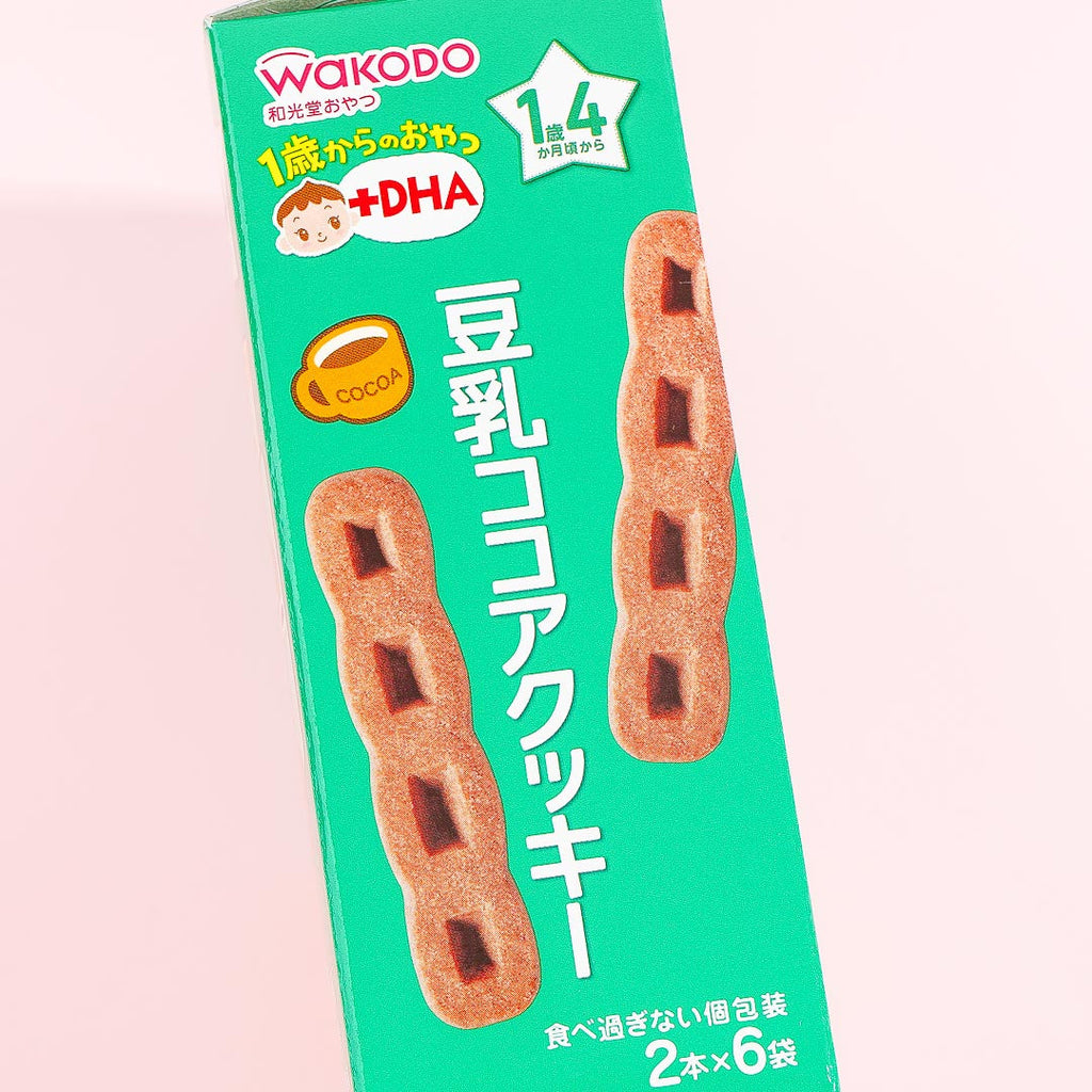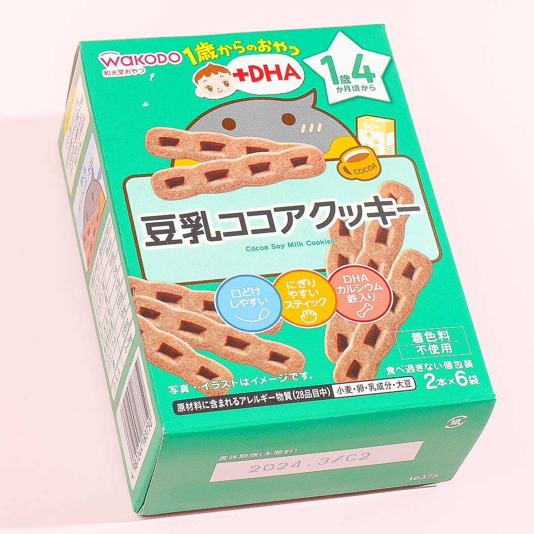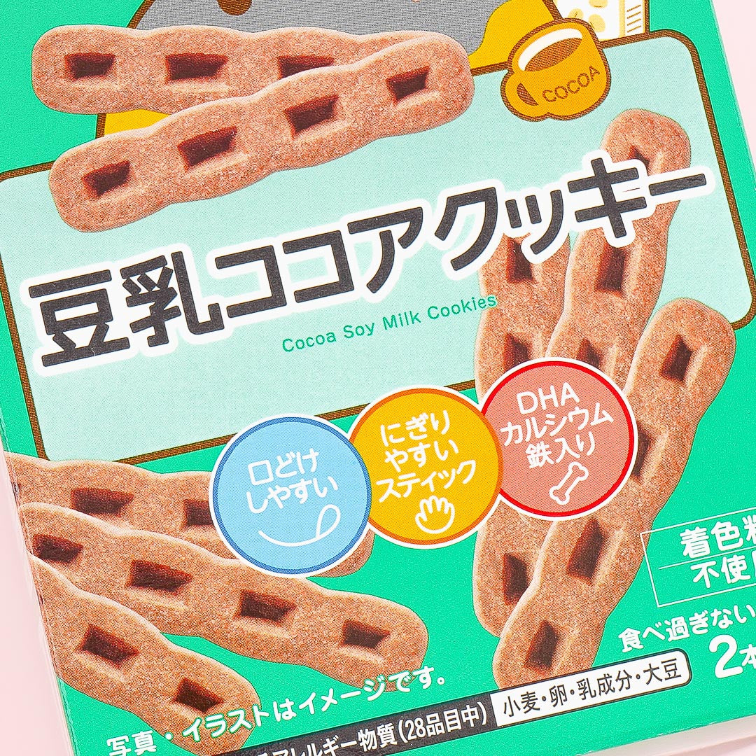 This box of mild cookies is made with soy milk and cocoa. It's made for 1-year-old children and older. Each piece is enhanced with DHA, calcium, and iron which are all needed for a child's growth. Give these yummy cookies for your baby to snack on!