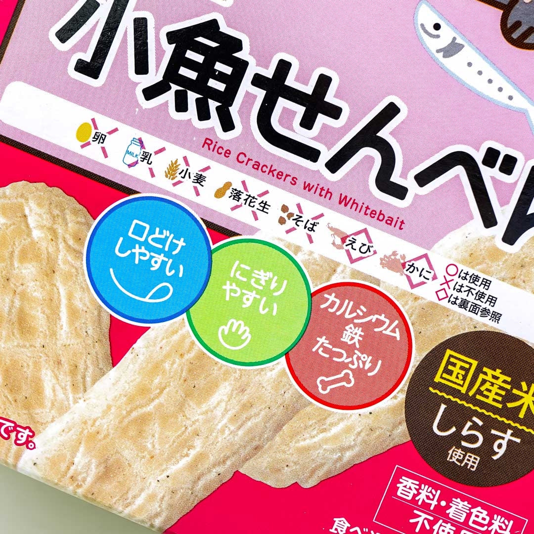 These yummy senbei treats are made with Whitebait or small sardines! Munch on these snacks to get your daily dose of calcium! It has six mini-packs inside with two crackers each so you can share them with friends. You can also let children try it!