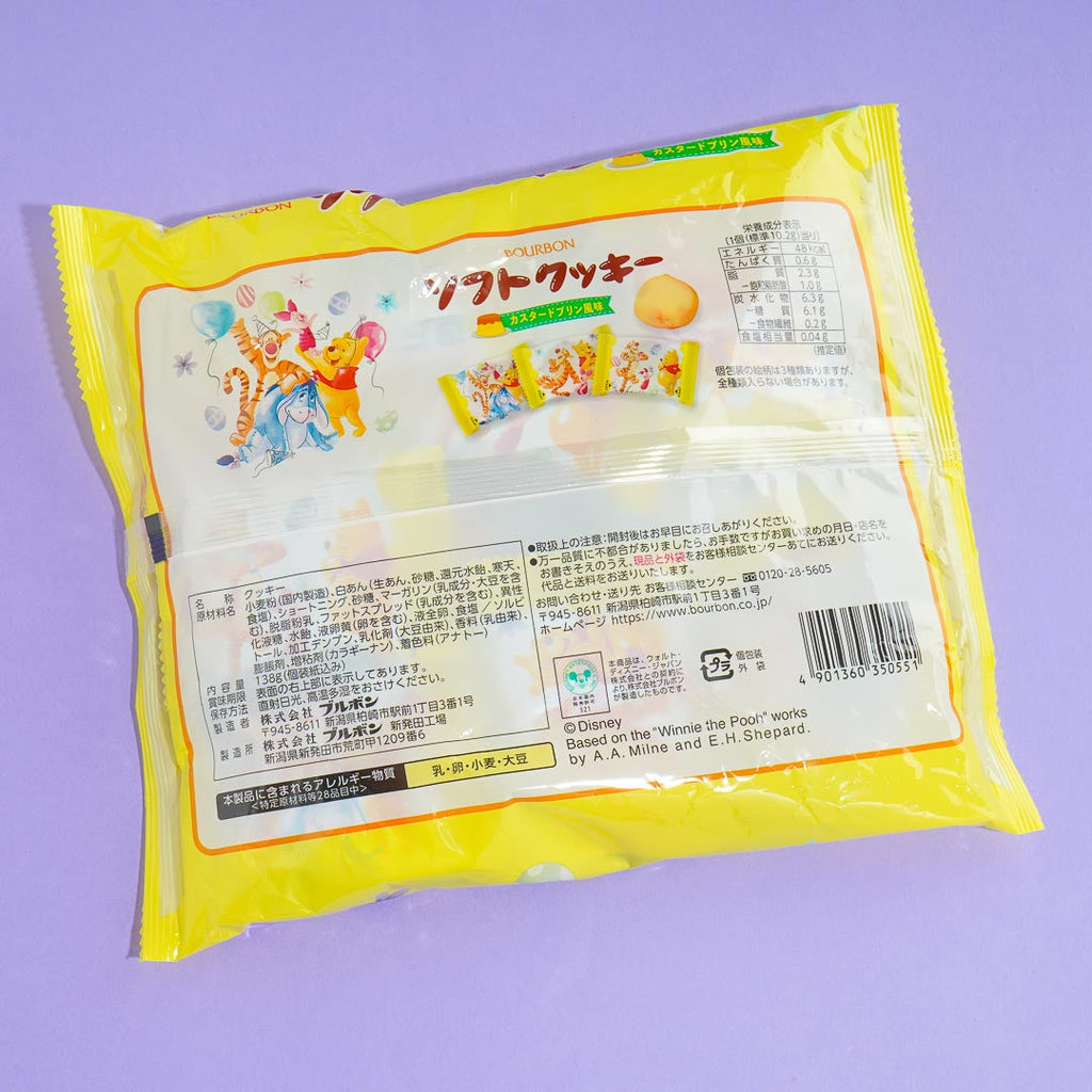 Pair these yummy moist cookies with your favorite tea! Each piece is flavored with sweet custard pudding! The pack features prints of Winnie The Pooh and his friends Piglet, Eeyore, and Tigger.