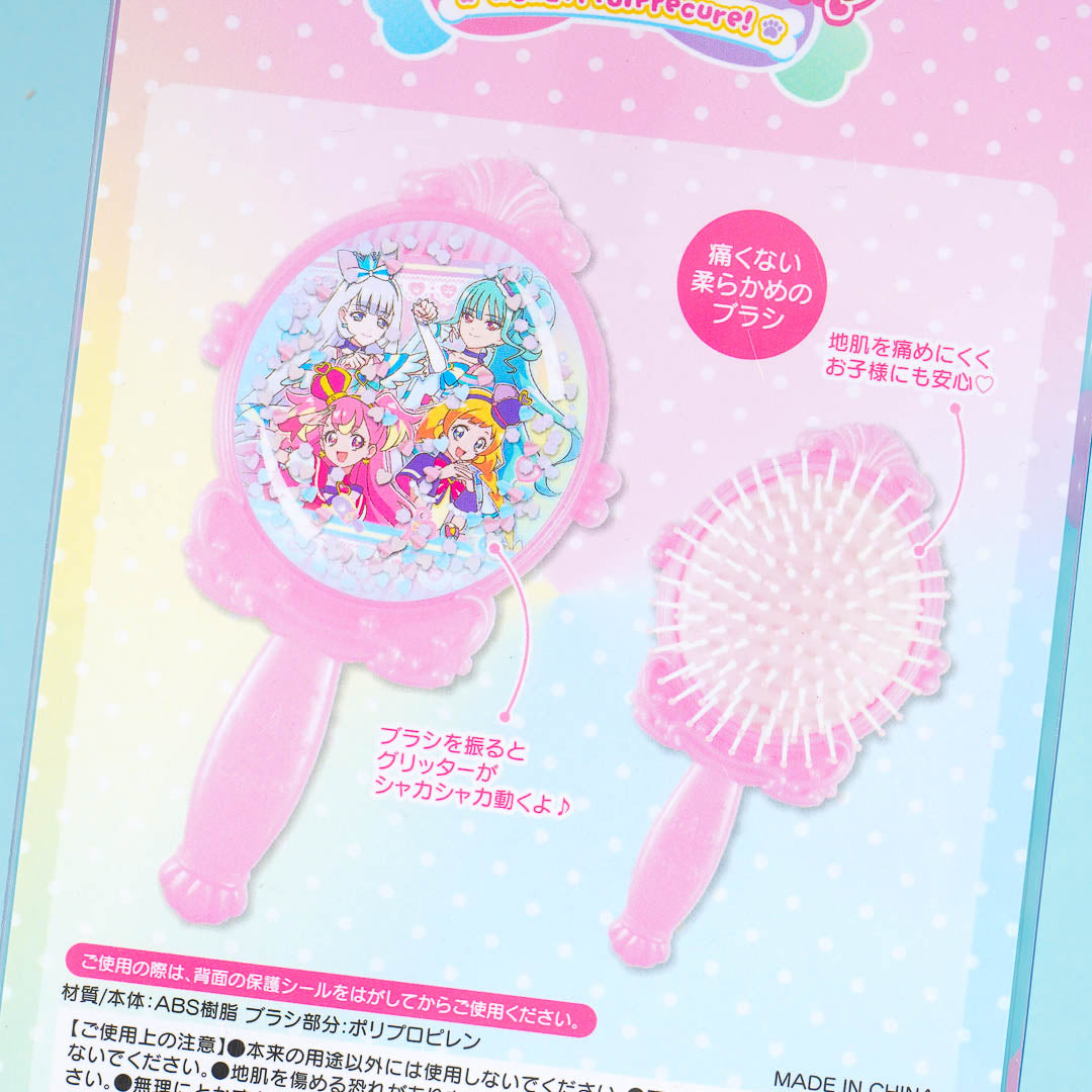 Keep your hair soft and smooth using this kawaii soft-bristled hair brush! It features a cute glittery design with an illustration from the anime series "Wonderful Pretty Cure." Shake the brush and the glitter will move around!