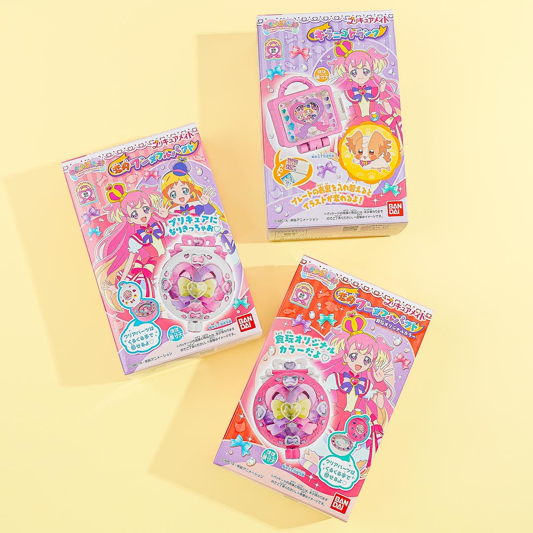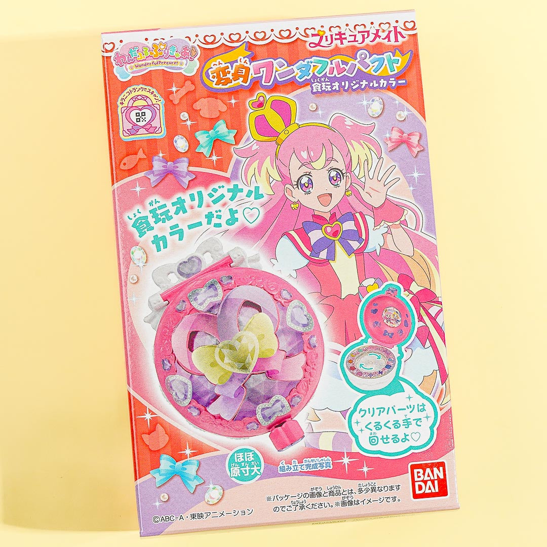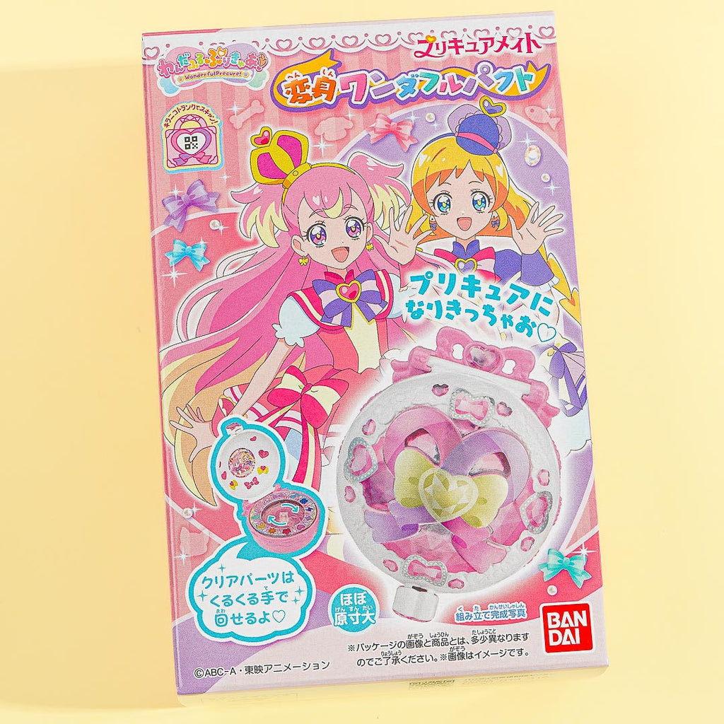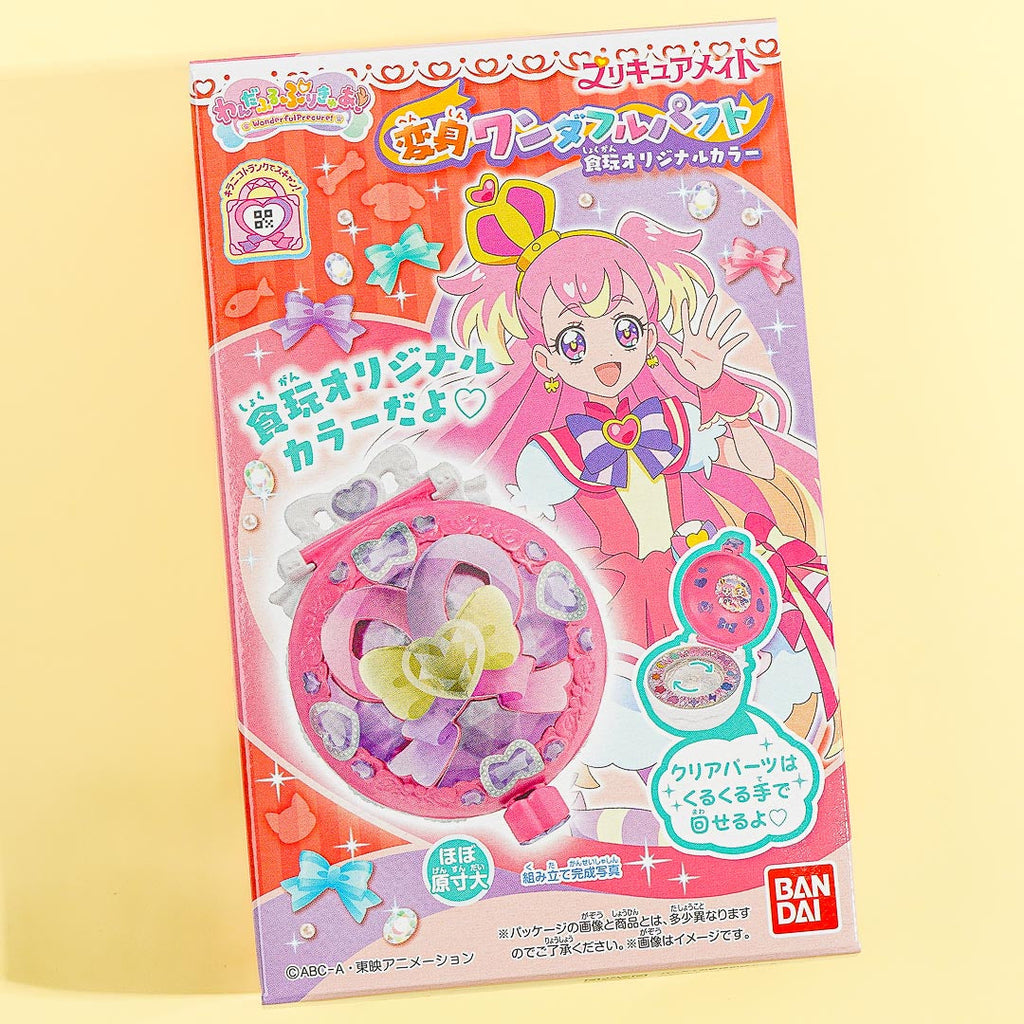 This super cute collectible is from the "Wonderful Pretty Cure! PreCute Mate" collection. It features different mini-items inspired by costumes from the Pretty Cure anime and a soda-flavored gum. You can decorate it with stickers before playing or putting it on display! This item comes blind-boxed, so you'll get a kawaii surprise!