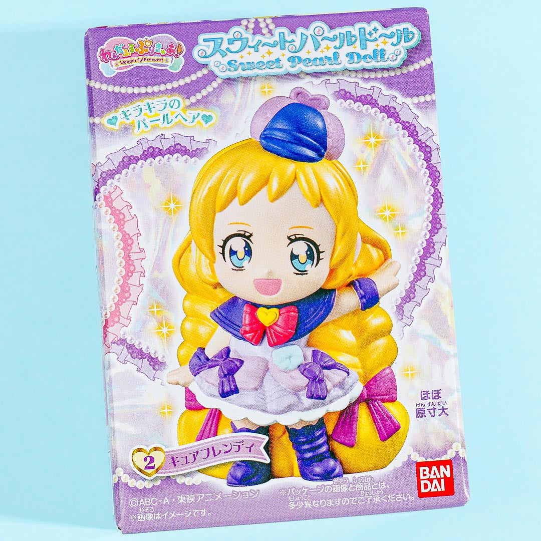 Add a touch of kawaii to your desk or bedside table when you place this super cute figure from the "Sweet Pearl" collection! It features the kawaii characters from the anime series, "Wonderful Pretty Cure!" This figure is made of soft vinyl and comes with a soda-flavored gum.