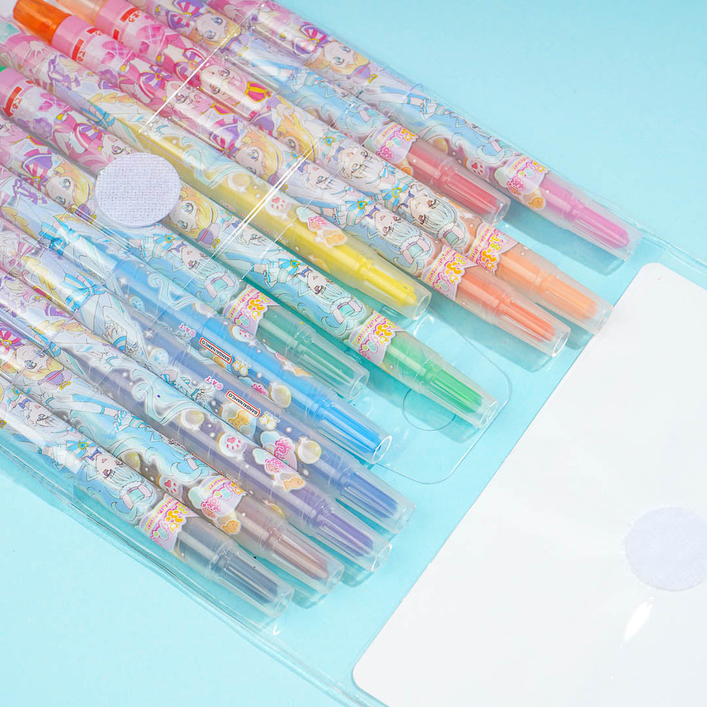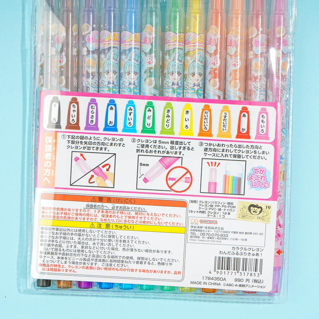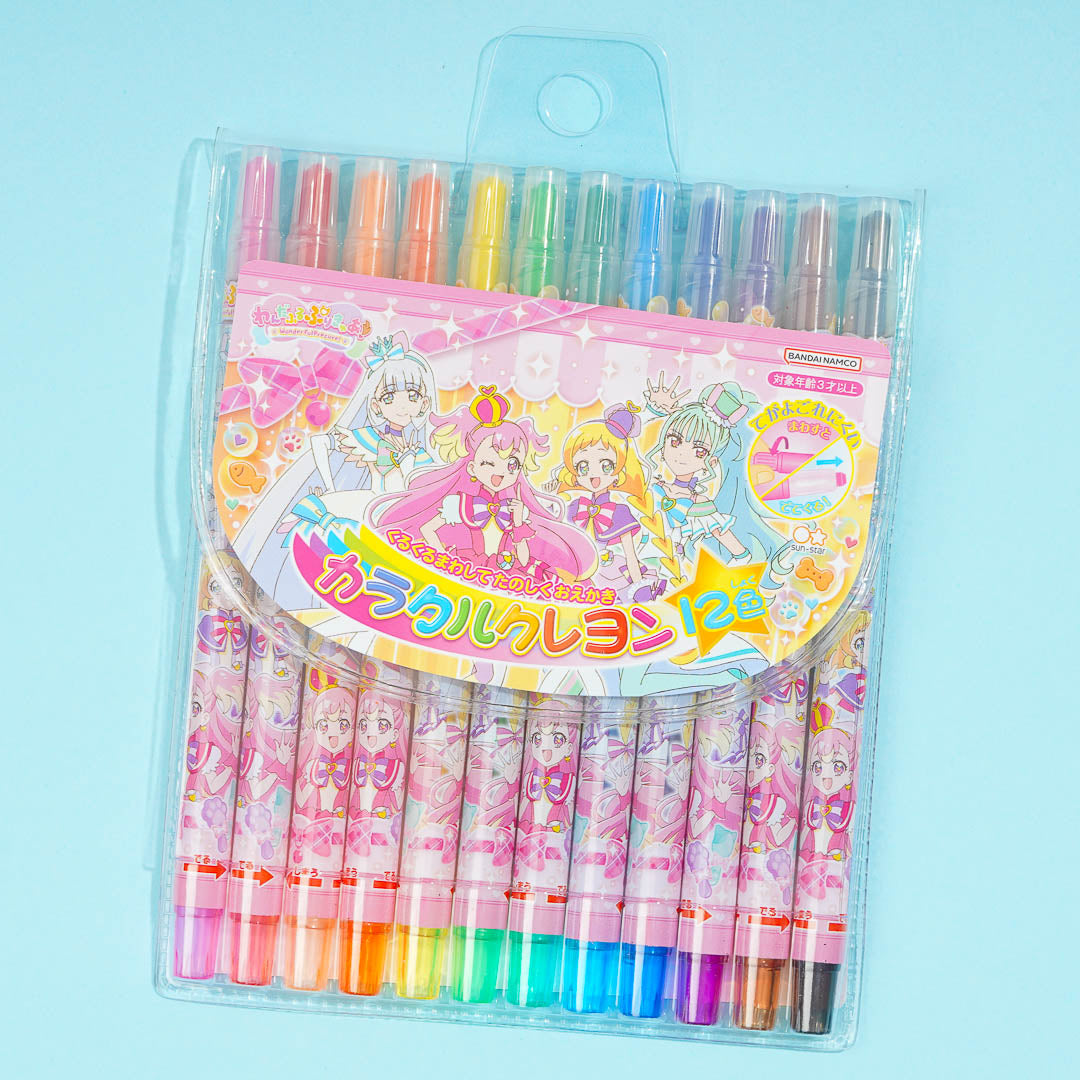 Have fun creating kawaii drawings using these cute crayons! Each piece is twistable, so you can do your craft projects without staining your hands! The set is decorated with prints of the characters of Wonderful Pretty Cure! characters.