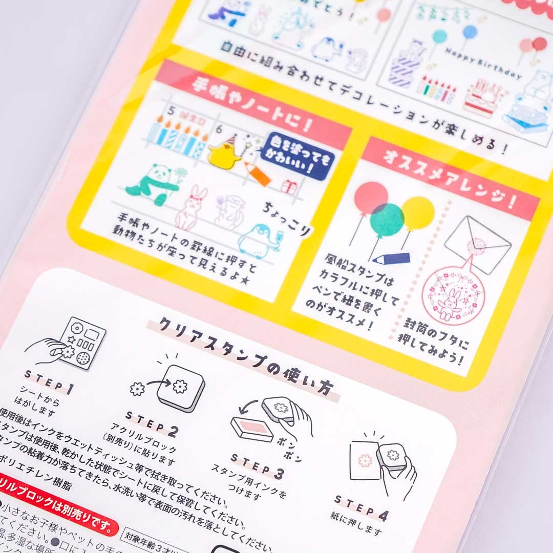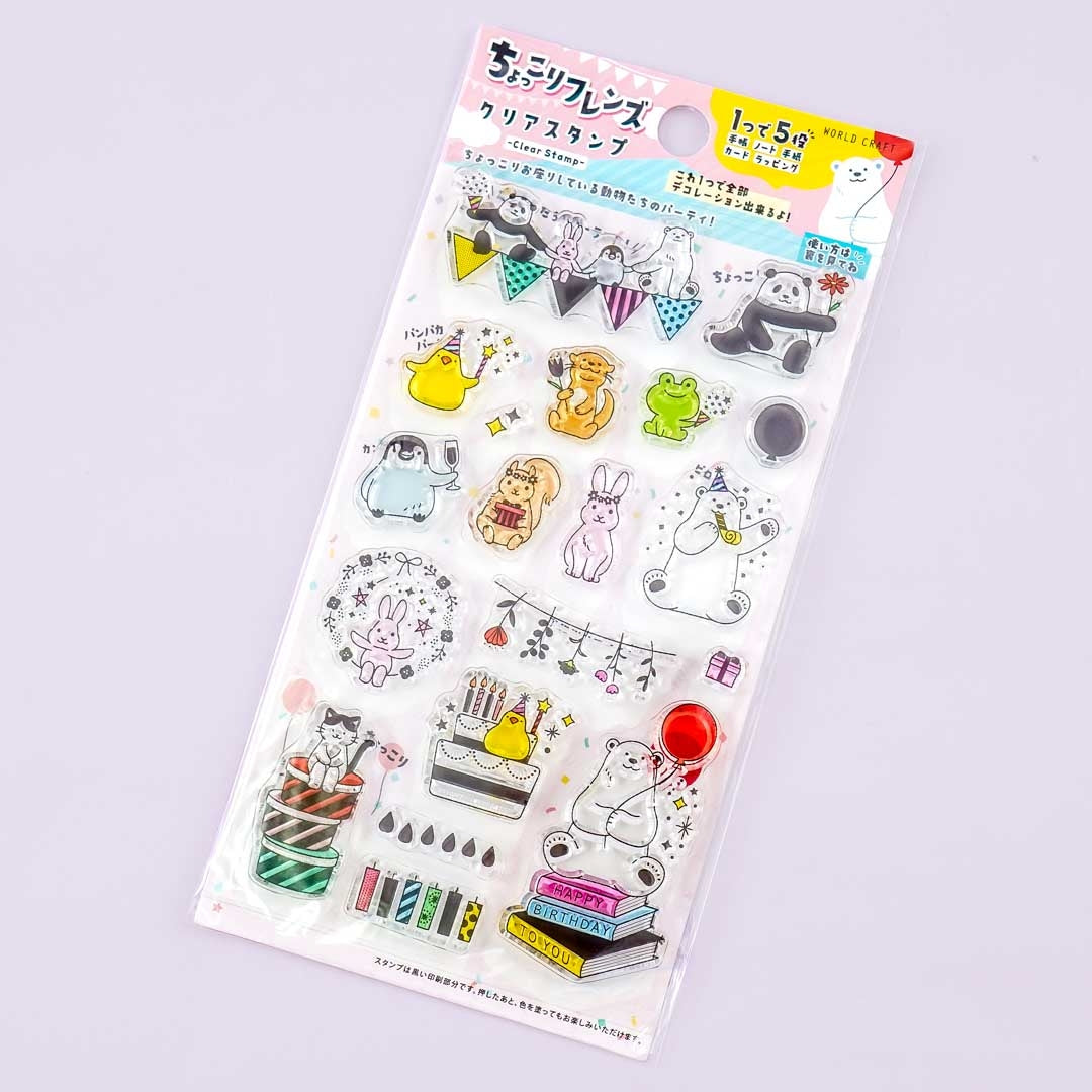 This super cute set of transparent stamps feature animals at a party. Use them to decorate your scrapbook! Follow the instructions at the back of the packaging to use the stamps. You can wash these stamps with water or clean them with a damp cloth after use. Remember, you can store the samps in the original packaging by re-adhering to the back sheet.