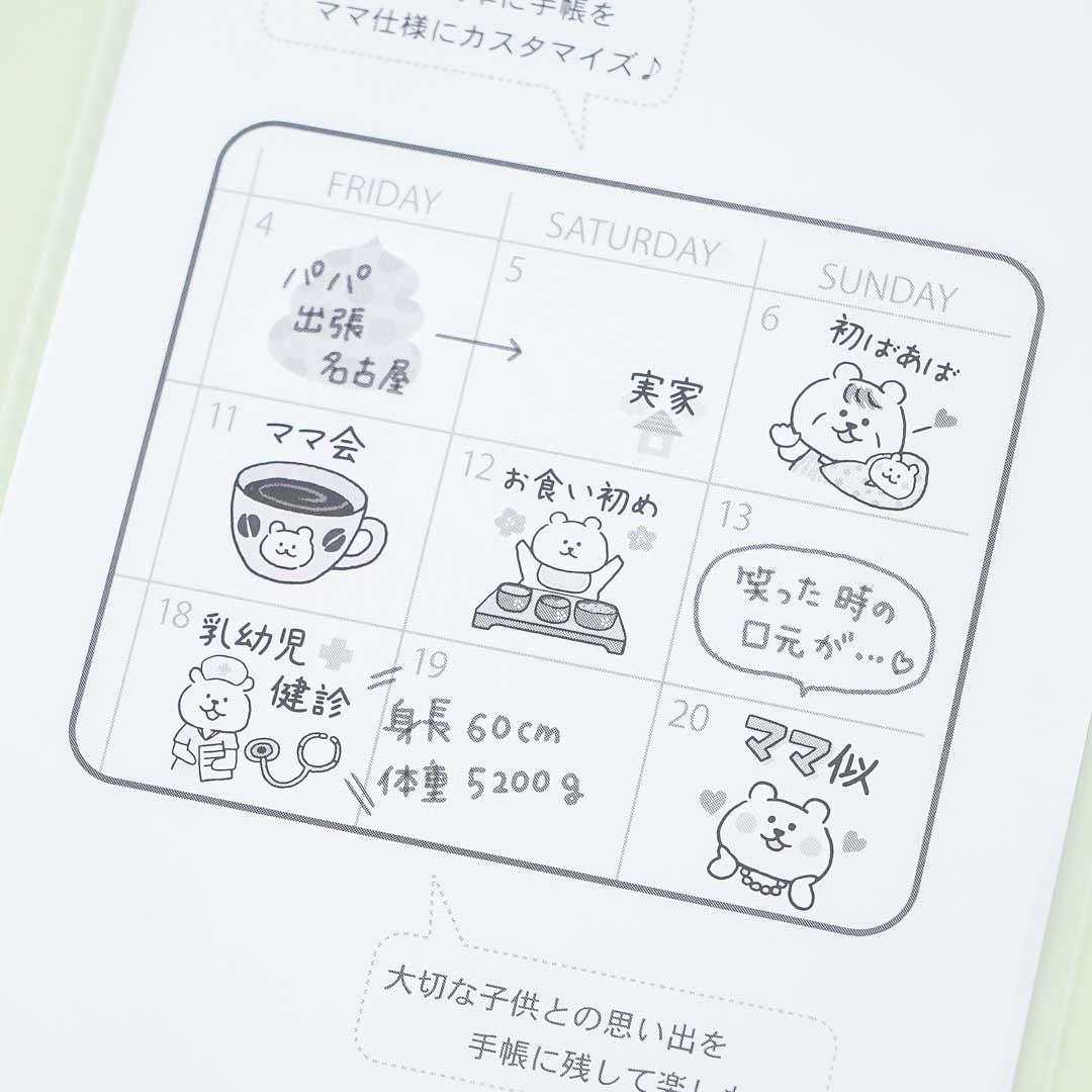 Commemorate your baby’s different milestones on your journal using these special die-cut deco seals! The sheet features prints of a polar bear couple celebrating their baby’s various “firsts” — having a bath, eating solid food, and more! These mini stickers are made of semi-transparent material.