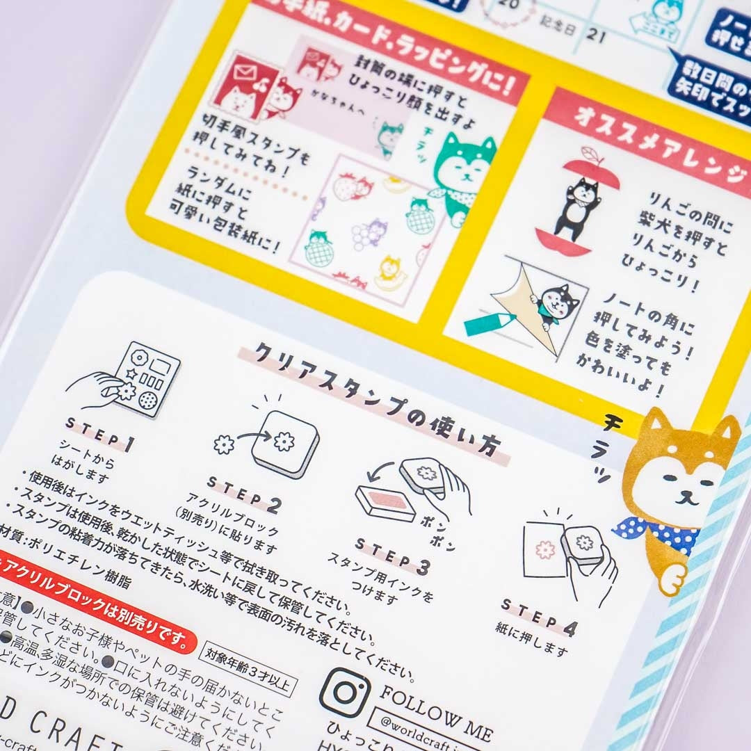 Use this super kawaii set of stamps to decorate your diary! It features curious Shiba Inus! Just follow the instructions at the back of the packaging to use the stamps! You can wash them with water or clean them with a damp cloth after use. These stamps can be stored in the original packaging by re-adhering to the back of the sheet.
