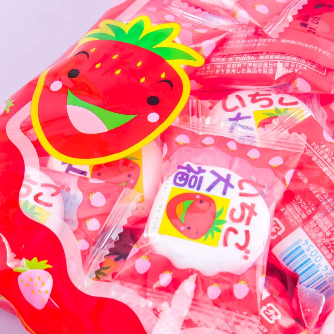 Have fun as you bite into these pillowy round treats! These marshmallows are filled with yummy sweet strawberry cream. Each piece comes individually wrapped to maintain its freshness.
