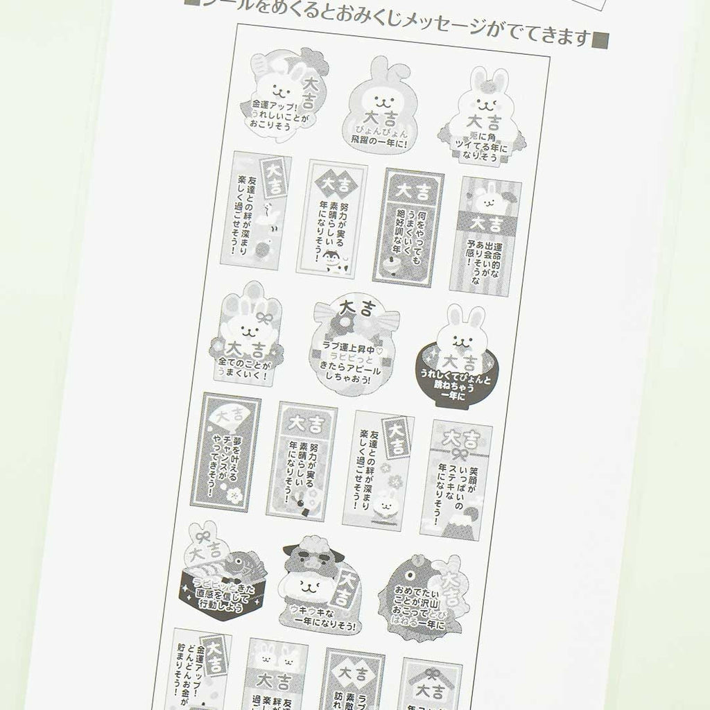 A sheet of kawaii stickers with prints of rabbits and greetings for the new year